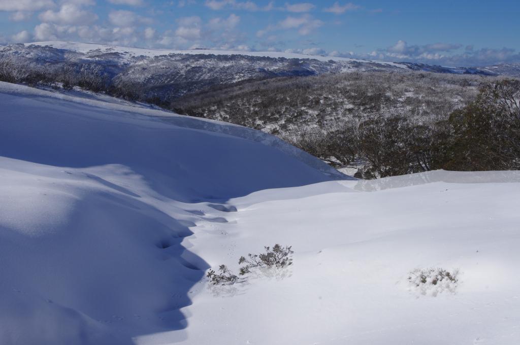 Early winter at Mount Buffalo is cold clear days with views of the snow on the Alps in the distance. June brings the first of the winter snow falls, but until the colder weather and bigger storms of early July arrive, little remains on the ground for long.